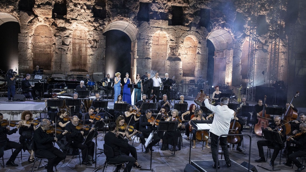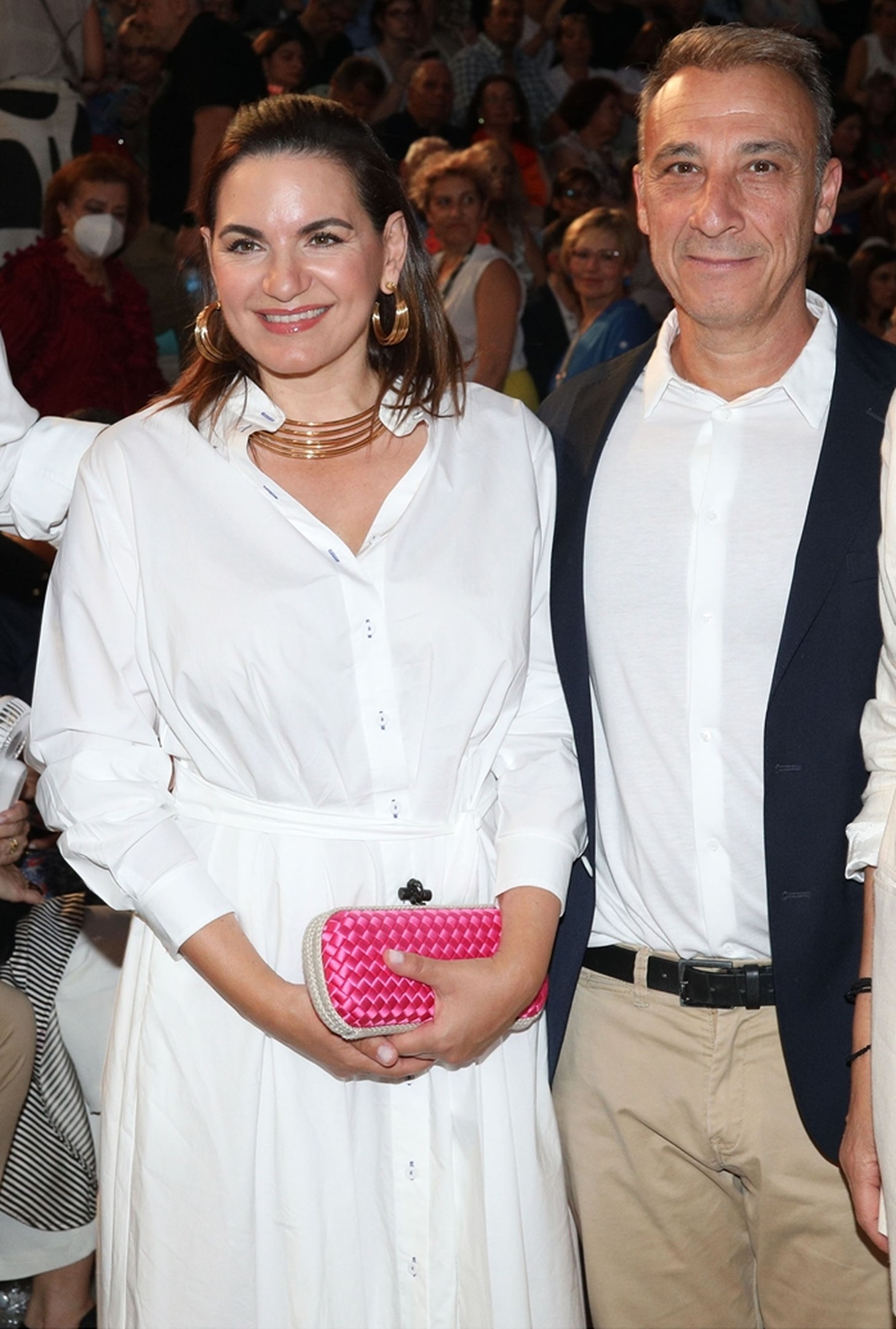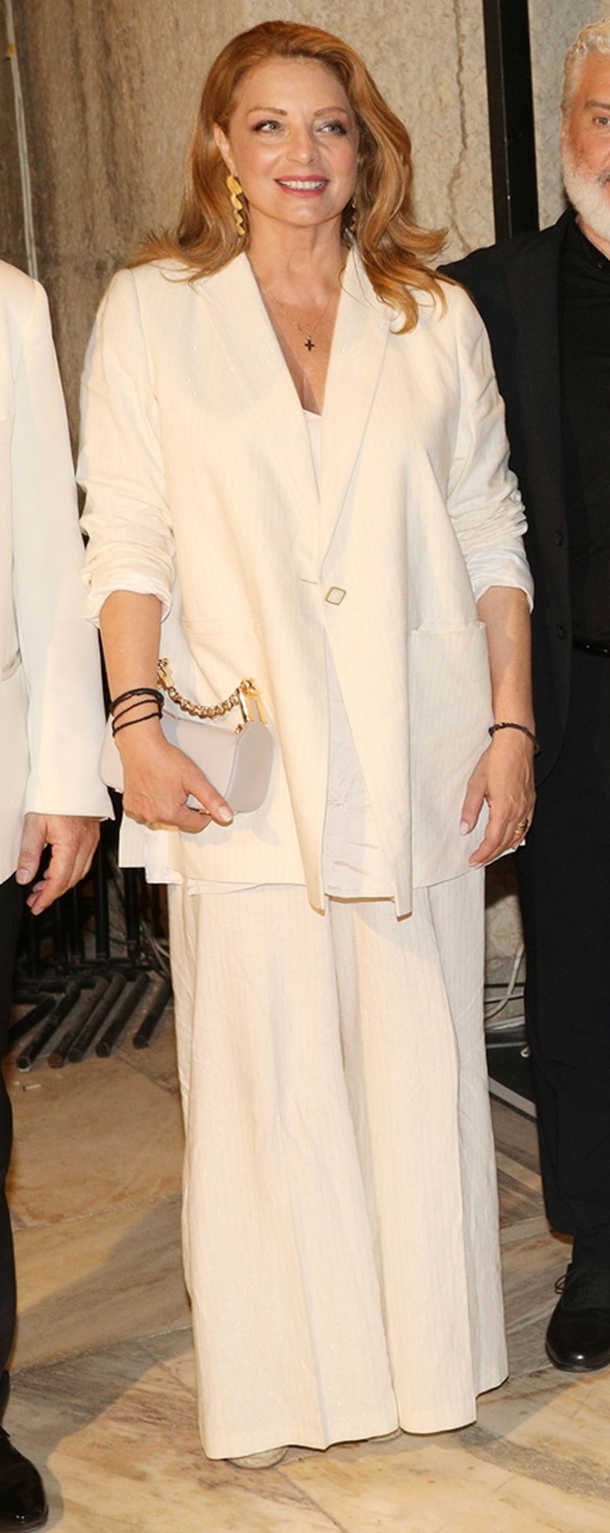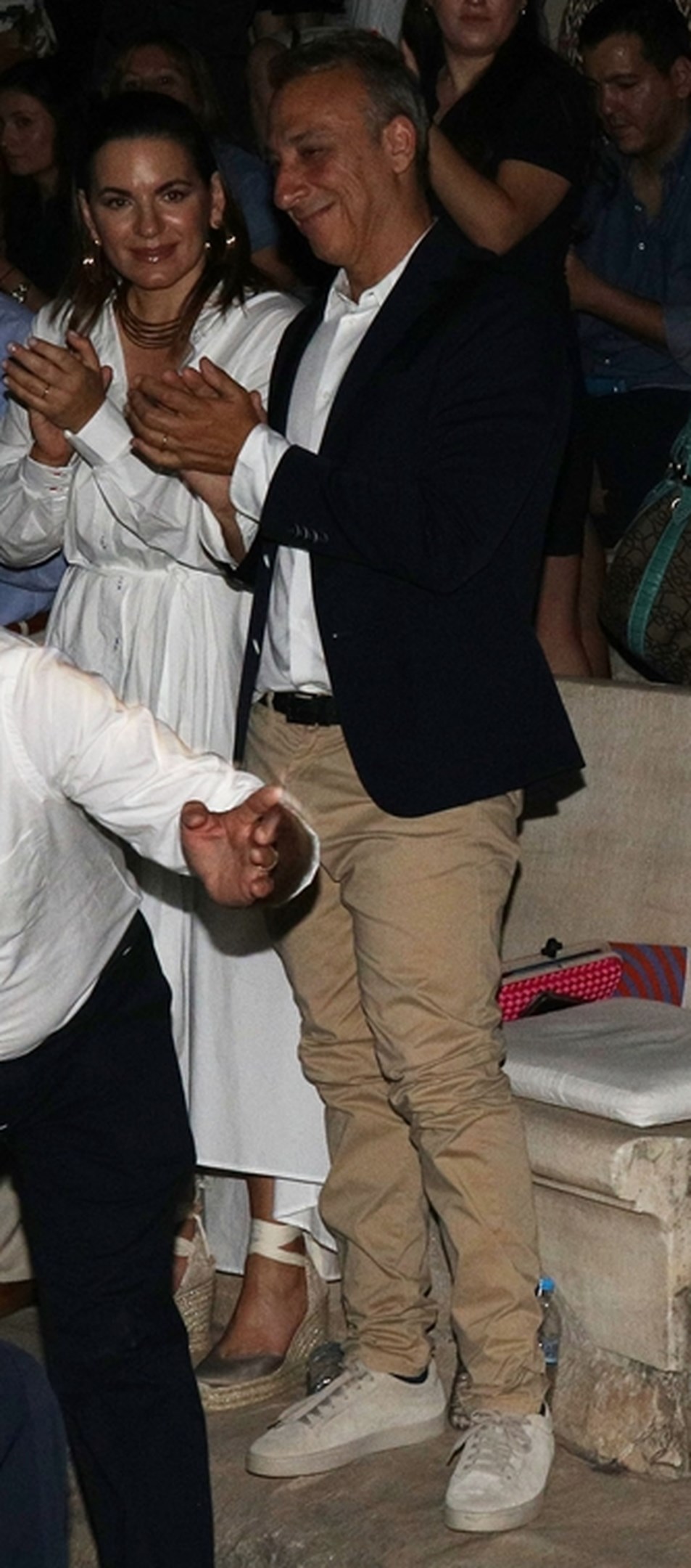 Τη συναυλία παρακολούθησαν η Άντζελα Γκερέκου και η κόρη της, Μαρία Βοσκοπούλου. Η ηθοποιός και πρόεδρος του ΕΟΤ εμφανίστηκε με κατάλευκο κοστούμι με ρίγες και λευκό μπλουζάκι. Το συνδύασε με εσπαντρίγιες. Η ίδια ήταν πανέμορφη και πολύ ανανεωμένη.