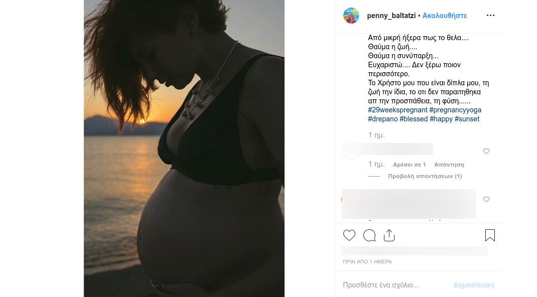 Πέννυ Μπαλτατζή έμεινε έγκυος μετά από πολλές προσπάθειες και συγκινεί με το μήνυμά της. «Κάνοντας αυτό το ταξίδι, μετά από αρκετές δυσκολίες χρόνων και ατυχίες, έχω να ευχηθώ από τα βάθη της καρδιάς μου σε όλους όσοι το επιθυμείτε να το ζήσετε…». Έτσι ξεκινά την ανάρτησή της στο Instagram η Πέννυ Μπαλτατζή η οποία είναι έγκυος στο πρώτο της παιδί.