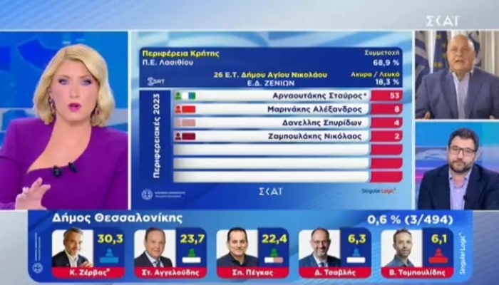Το ποσοστό του Κώστα Μπακογιάννη στο Δήμο Αθηναίων ανακοίνωσε η Σία Κοσιώνη στον ΣΚΑΪ.