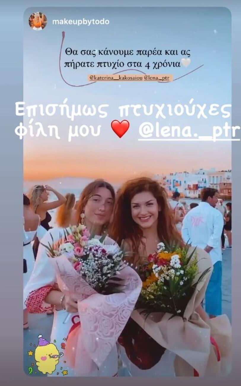 “Ορκιστήκαμε φίλη μου @lena._ptr και είχαμε και την τύχη να ορκιστούμε μαζί. Μαζί ξεκινήσαμε, μαζί περάσαμε τα πάντα, μαζί κλείσαμε αυτό το κεφάλαιο. Σ’ αγαπάω πολύ πολύ”, ήταν η λεζάντα που συνόδευσε τις φωτογραφίες της η κόρη του Γιάννη Πλούταρχου.