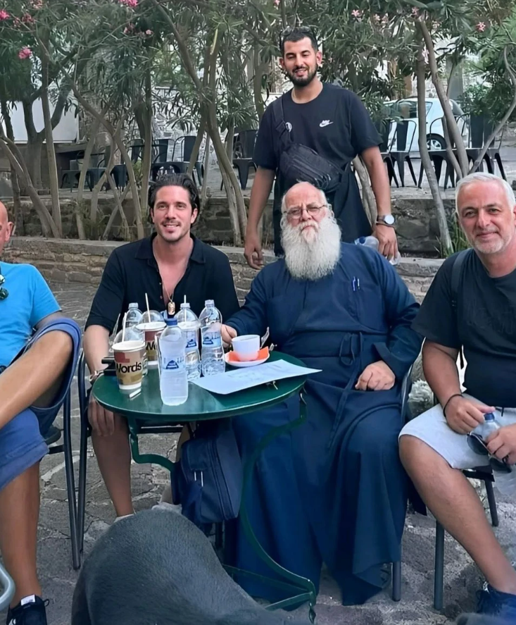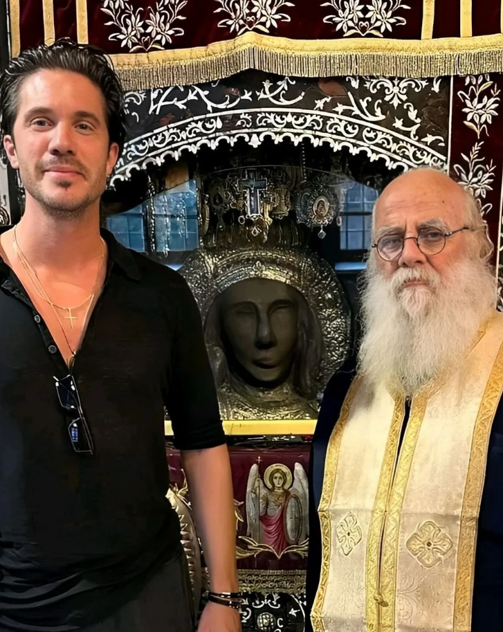 Ο Νίκος Οικονομόπουλος φωτογραφήθηκε με τον ιερέα της εκκλησίας και άλλους προσκυνητές και οι φωτογραφίες αναρτήθηκαν στο instagram του orthodoxtruth.gr. Ακόμη, προσκύνησε την εικόνα του Αρχάγγελου Μιχαήλ που είναι η μοναδική ανάγλυφη εικόνα στην Ελλάδα και φτιάχτηκε σύμφωνα με την ορθόδοξη παράδοση, από χώμα και το αίμα σφαγιαθέντων μοναχών, έπειτα από επιδρομή που δέχτηκε το μοναστήρι από Σαρακηνούς πειρατές.