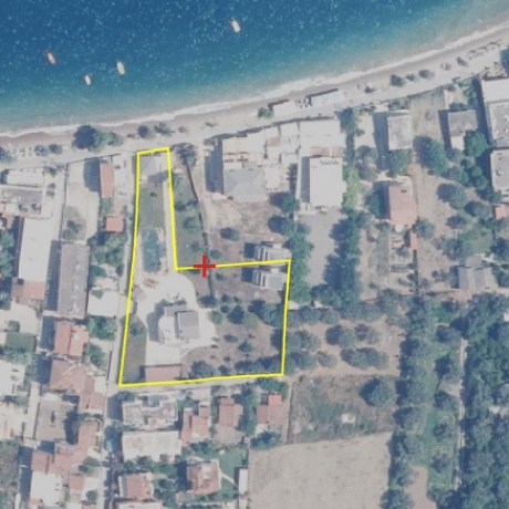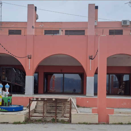 Σύμφωνα με την εξωτερική αυτοψία, πρόκειται για διώροφη οικοδομή, δύο διώροφες κατοικίες με υπόγειο (ημιτελείς) τυπικής κατασκευής με σκελετό από οπλισμένο σκυρόδεμα και πισίνα εντός του παραπάνω οικοπέδου. Η διώροφη οικοδομή βρίσκεται στο νοτιοδυτικό τμήμα του οικοπέδου, είναι σε καλή κατάσταση συντήρησης και διαθέτει εύκολη πρόσβαση τόσο από το βόρειο τμήμα (αιγιαλό) όσο και από το δυτικό. Βόρεια της διώροφης οικοδομής εντοπίζεται η πισίνα εμβαδού 85 τ.μ. ενώ, ενώ νότια βρίσκεται κτίσμα πρόχειρης κατασκευής που εξυπηρετεί την στάθμευση αυτοκινήτων.