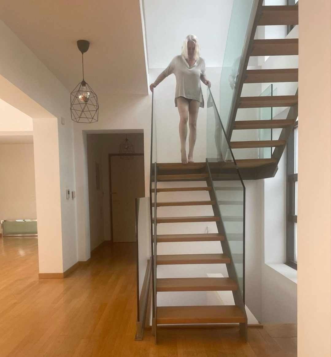 Στον μεγάλο τοίχο του σαλονιού πάνω από το τζάκι, είναι τοποθετημένη η τηλεόραση, ενώ στους τοίχους, δίπλα από την σκάλα, που οδηγεί στα πάνω δωμάτια, υπάρχουν πολλά κάδρα με φωτογραφίες της από προσωπικές, αλλά και επαγγελματικές στιγμές της.