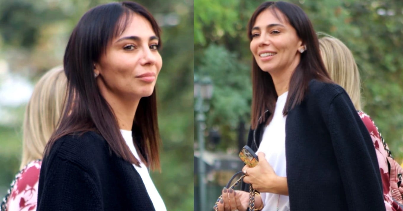 H σύζυγος του Βασίλη Σπανούλη ολοκλήρωσε την εμφάνιση με μαύρο blazer, μπαλαρίνες και τσάντα του οίκου Chanel.