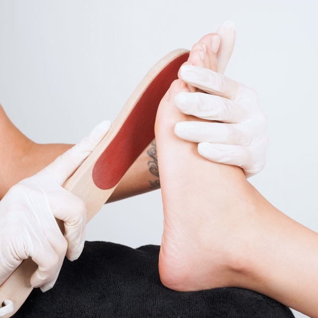 Μόλις μαλακώσουν τα πόδια, τα τρίβετε απαλά με ελαφρόπετρα ή ράσπα για να απομακρυνθούν οι σκληρύνσεις.