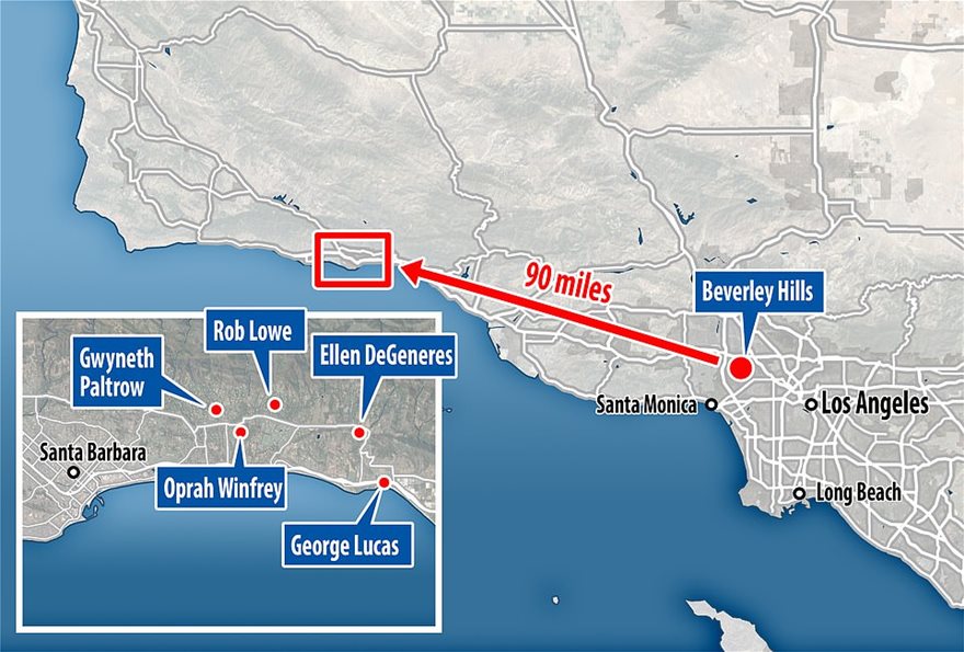 Στη νέα τους «γειτονιά» κατοικούν πολλοί Αμερικανοί σελέμπριτι, όπως η Όπρα Γουίνφρεϊ και η Έλεν Ντετζενερες και ο Τζορτζ Λούκας.