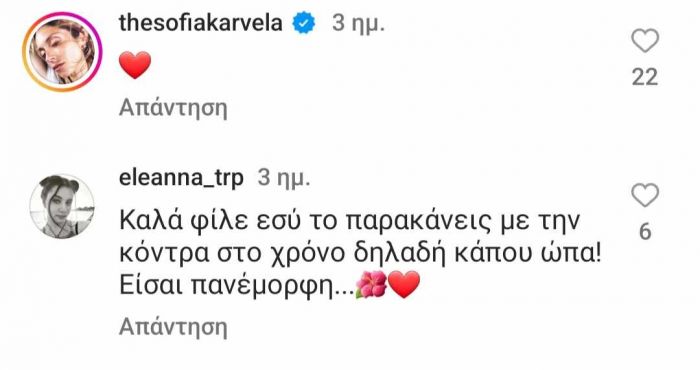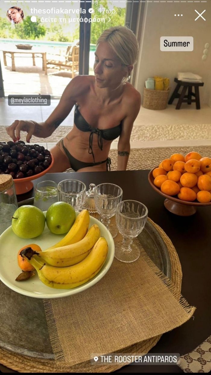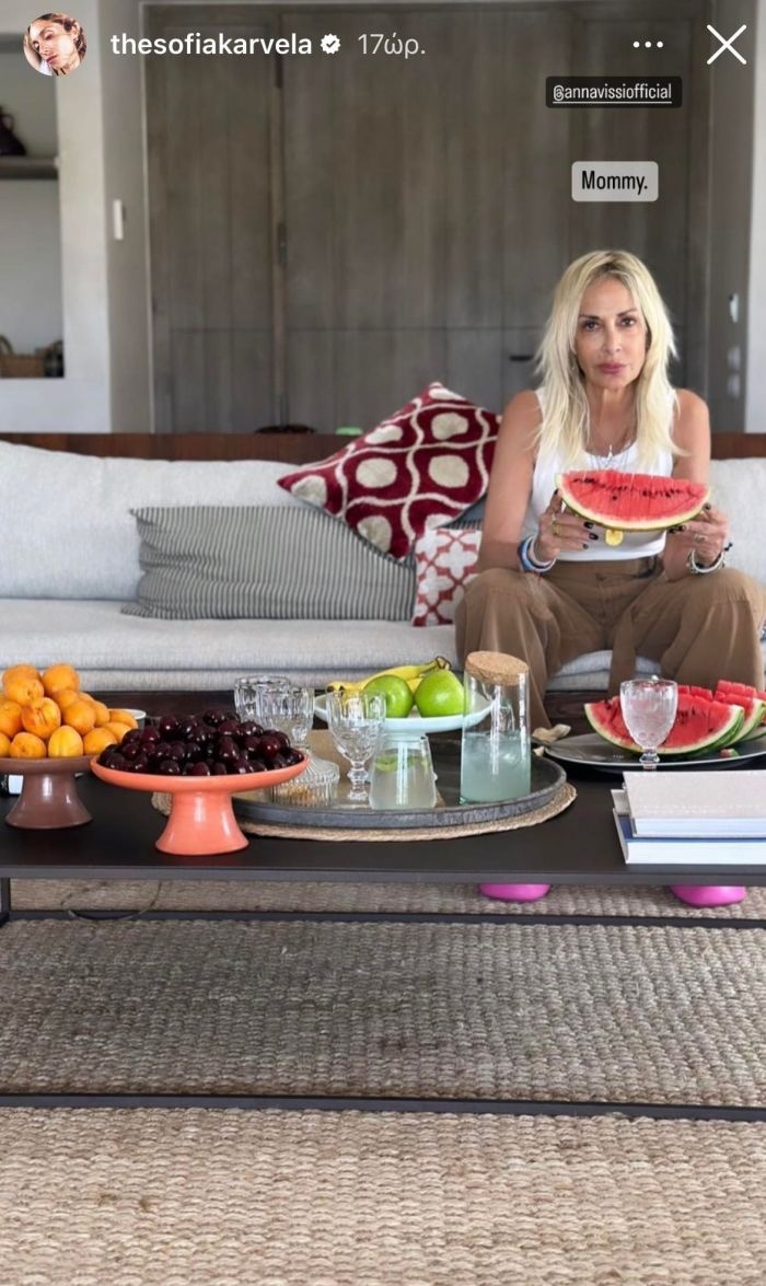 Η ίδια, ωστόσο στο μεσοδιάστημα απόλαυσε τις διακοπές της με τη Σοφία Καρβέλα, τον Νίκο Καρβέλα και τα εγγόνια τους – Νίκο και Νέστωρ – στην Αντίπαρο, ενώ βρέθηκε να περνάει ξέγνοιστες στιγμές και στην Κέρκυρα.
