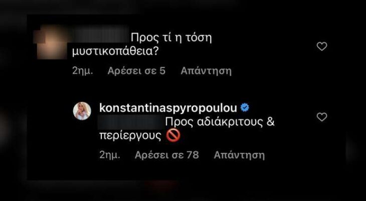 Η Κωνσταντίνα Σπυροπούλου θέλησε να απαντήσεις πιο αναλυτικά στους περίεργους ακόλουθούς της.