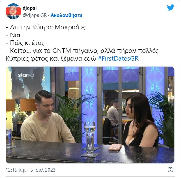 Στο «First Dates» θέλησε να δοκιμάσει την τύχη της η Βασιλική από την Κύπρο, η οποία κατάφερε να κάνει έξω φρενών το Twitter, καθώς την «χαλάει» το έτερον ήμισυ να είναι Έλληνας.