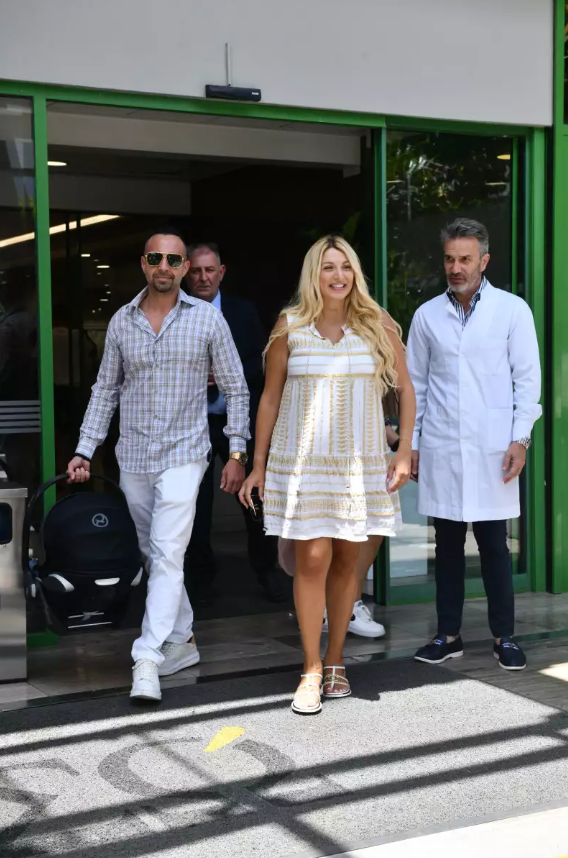 Λίγο μετά το εξιτήριο από το μαιευτήριο, η Κωνσταντίνα και ο Βασίλης βρέθηκαν έξω με τον νεογέννητο γιο τους, ενώ στο πλευρό τους ήταν και ο γιατρός της παρουσιάστριας, Παναγιώτης Ψαθάς.