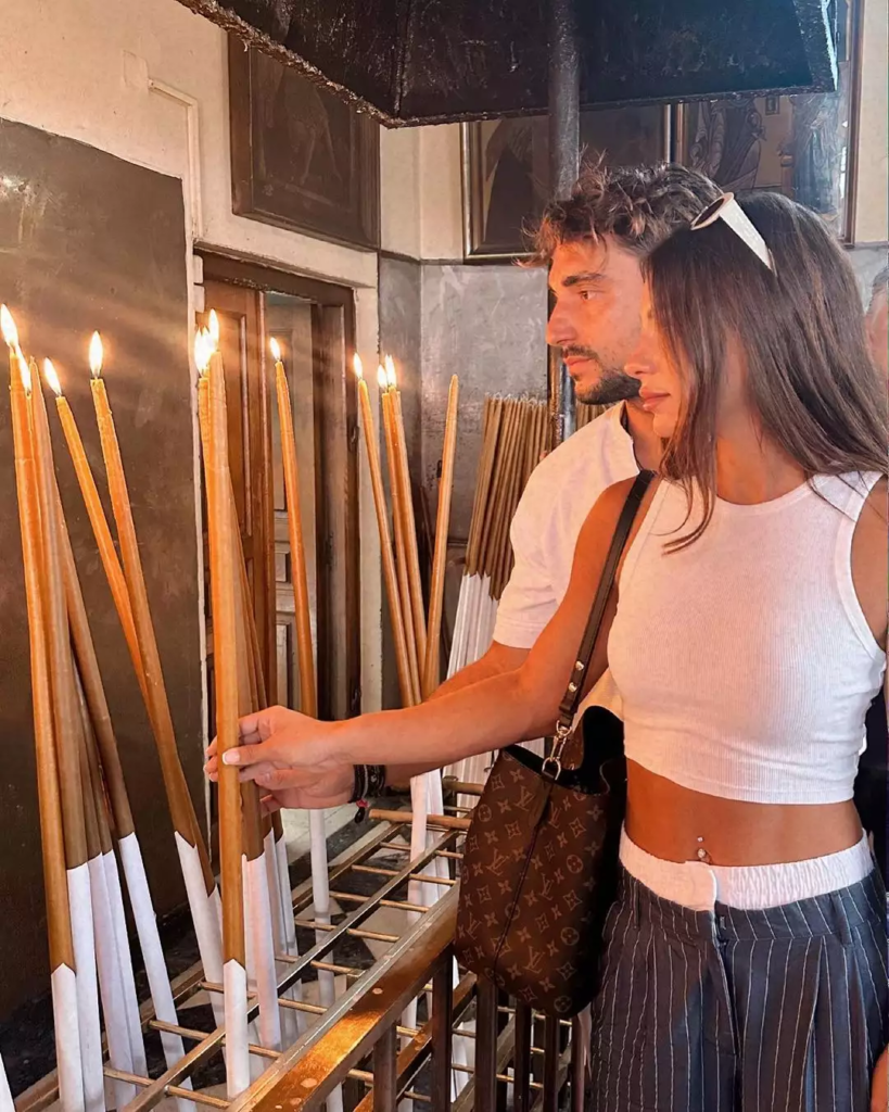 Το ζευγάρι βρέθηκε στο όμορφο νησί των Κυκλάδων μετά από επιθυμία της Μαριαλένας Ρουμελιώτη να επισκεφθεί το νησί και την εκκλησία όπου βαπτίστηκε.