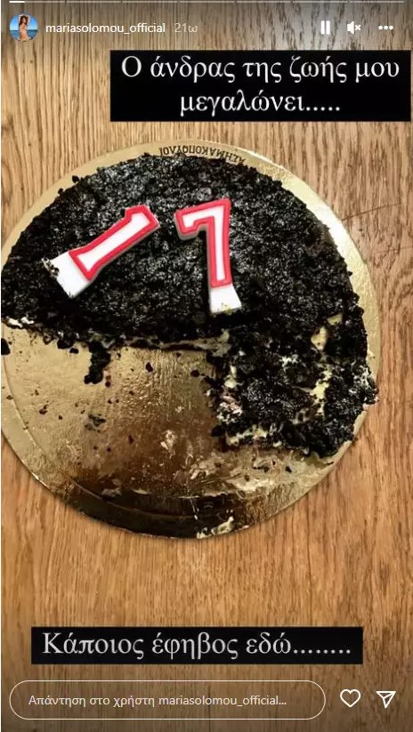 Η Μαρία Σολωμού που προσπαθεί να κρατά μακριά από τα media την προσωπική της ζωή, ανέβασε μία φωτογραφία με την τούρτα του γιου της, γράφοντας: «Ο άνδρας της ζωής μου μεγαλώνει. Κάποιος έφηβος εδώ».