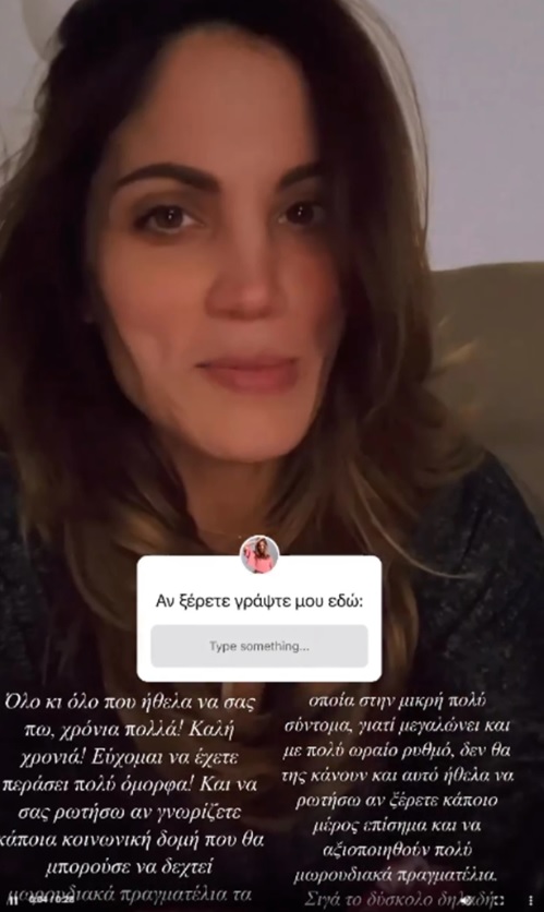 “Όλο και όλο που θέλω να σας πω είναι χρόνια πολλά. Καλή χρονιά εύχομαι να έχετε περάσει όμορφα. Και να σας ρωτήσω αν γνωρίζετε κάποια κοινωνική δομή για να δώσω μωρουδιακά πράγματα,