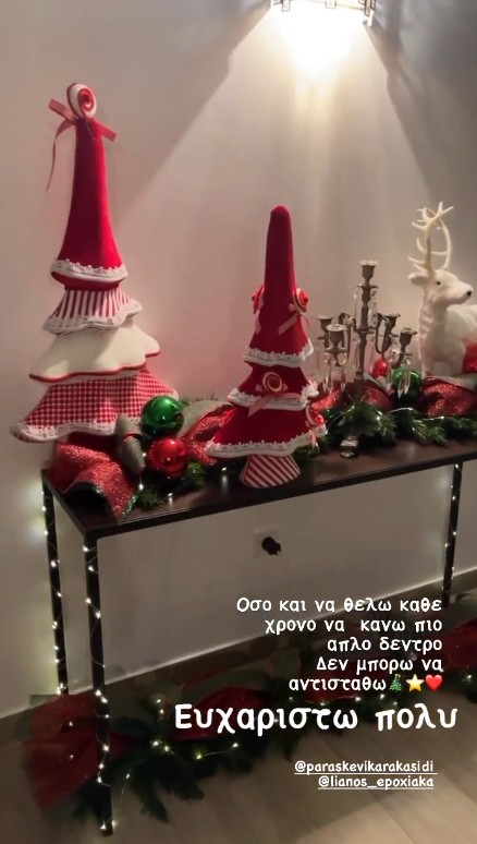 Το πρώην μοντέλο, όπως και πολλοί celebrities της εγχώριας showbiz μοιράστηκαν εικόνες από τον χριστουγεννιάτικο στολισμό στο σπίτι τους.