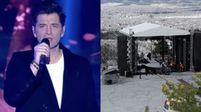 Σε εξέλιξη βρίσκονται οι προετοιμασίες για την σκηνή που θα στηθεί στον Λυκαβηττό, όπου και θα ερμηνεύσει σήμερα το βράδυ ο Σάκης Ρουβάς.