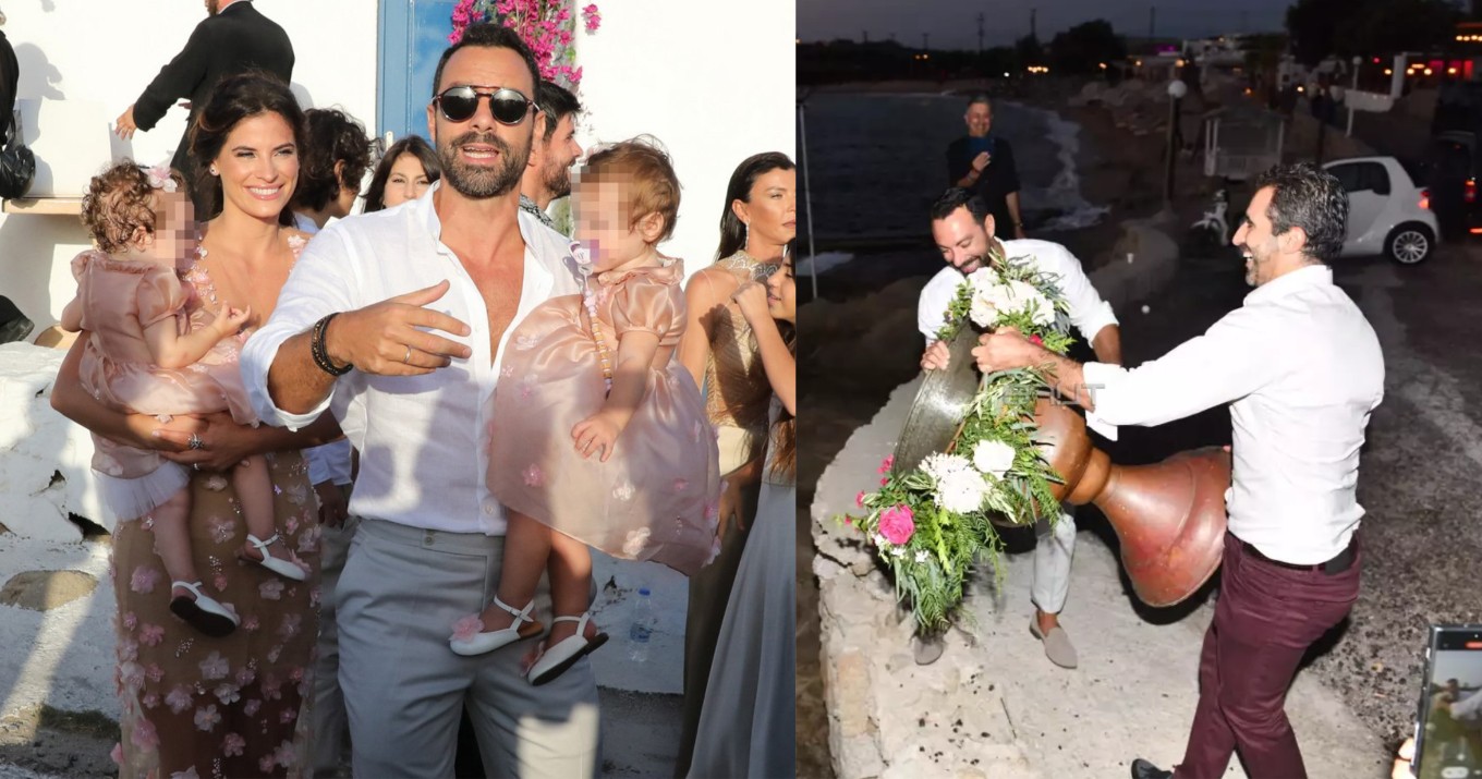 Συγκεκριμένα το ζευγάρι βάφτισε την Αριάνα και την Φιλίππα στον Ι.Ν της Αγίας Άννας στον Πλατύ Γιαλό, υπό την παρουσία συγγενών και φίλων.