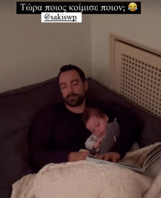 Ο Σάκης Τανιμανίδης φαίνεται πως προσπάθησε να κοιμίσει τη μία του κόρη, με αποτέλεσμα να αποκοιμηθούν και οι δύο μαζί στον καναπέ.