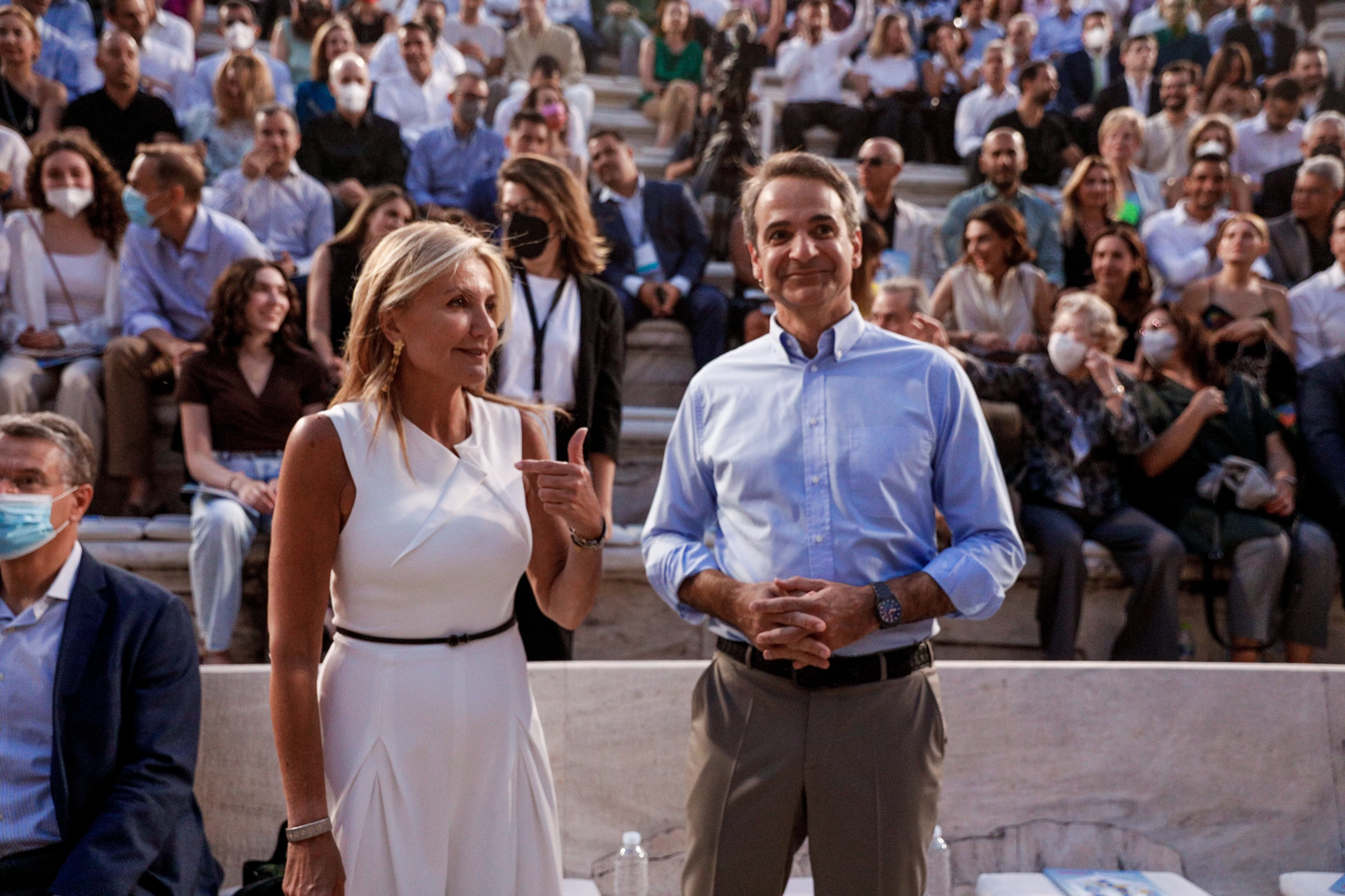 Ο πρωθυπουργός Κυριάκος Μητσοτάκης το βράδυ της Πέμπτης βρέθηκε με τη σύζυγό του Μαρέβα Γκραμπόφσκι Μητσοτάκη στο Ηρώδειο.