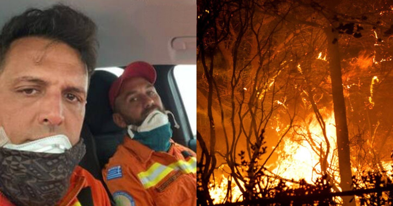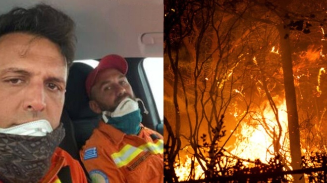 Μαζί του είναι και ο Κώστας Αναγνωστόπουλος, ο γνωστός και ως «Μισθοφόρος», πρώην παίκτης του Survivor, ο οποίος συμμετέχει εθελοντικά στην κατάσβεση των πυρκαγιών.