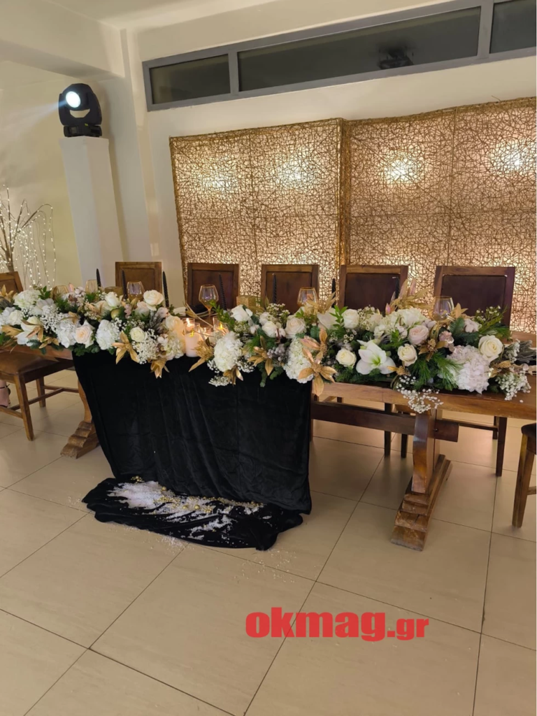 Το ζευγάρι έφτασε στο κέντρο δεξίωσης όπου έκαναν είσοδο με τραγούδι της Δέσποινας Βανδή. Ο γαμπρός γονάτισε μπροστά στη νύφη όταν έκοβαν τη γαμήλια τούρτα και η Ελίζαμπεθ Ελέτσι δεν έκρυψε τη συγκίνησή της.