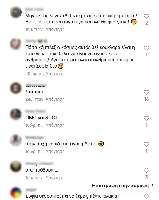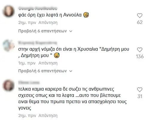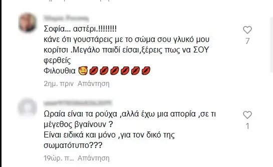 Δες παρακάτω μερικά από τα σχόλια των ακολούθων της:
