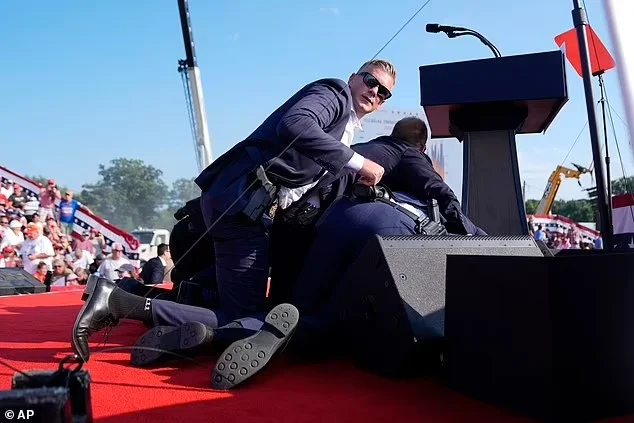 Στη συνέχεια σηκώθηκε όρθιος και σήκωσε τη γροθιά του στον αέρα, προτού τον συνοδεύσουν από τη σκηνή σε ένα όχημα και στη συνέχεια απομακρυνθεί από τη σκηνή με μεγάλη ταχύτητα. Το βίντεο και οι φωτογραφίες που έχουμε στη διάθεσή μας δείχνουν αίμα στο αυτί του καθώς απομακρυνόταν. Ο πρώην πρόεδρος φάνηκε να κρατάει το πλάι του κεφαλιού του καθώς έπεφτε στο έδαφος.