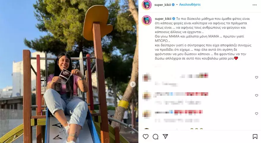 Η Σούπερ Κική περνάει δύσκολες ώρες, μετά την αποβολή, την οποία ανακοίνωσε η ίδια, με μία μακροσκελή ανάρτηση στον προσωπικό της λογαριασμό στο instagram.