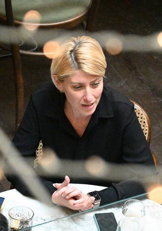 Όταν η σύζυγος του Δημάρχου Αθηναίων αντιλήφθηκε τον φωτογραφικό φακό, λίγο πριν κάτσει για να απολαύσει τον καφέ της, δεν το έβαλε στα πόδια, αλλά χαμογέλασε, όπως πάντα ευδιάθετη και ευγενική.