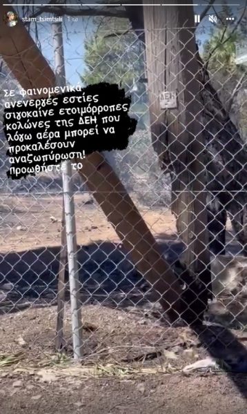 Στη συνέχεια, σε νέο της story ξέσπασε λέγοντας πως υπάρχουν ετοιμόρροπες κολώνες της ΔΕΗ, οι οποίες μπορεί να να προκαλέσουν αναζωπύρωση και ζήτησε να το προωθήσουν.