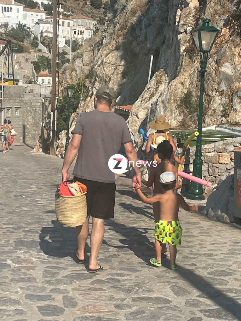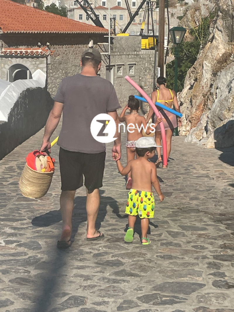 Ο φακός του Znews ήταν εκεί και “τσάκωσε” την παρουσιάστρια με την οικογένειά της στις διακοπές τους, με φουλ εξοπλισμό για τη θάλασσα, να κατεβαίνει τα στενά της χώρας της Ύδρας, με προορισμό το λιμάνι.