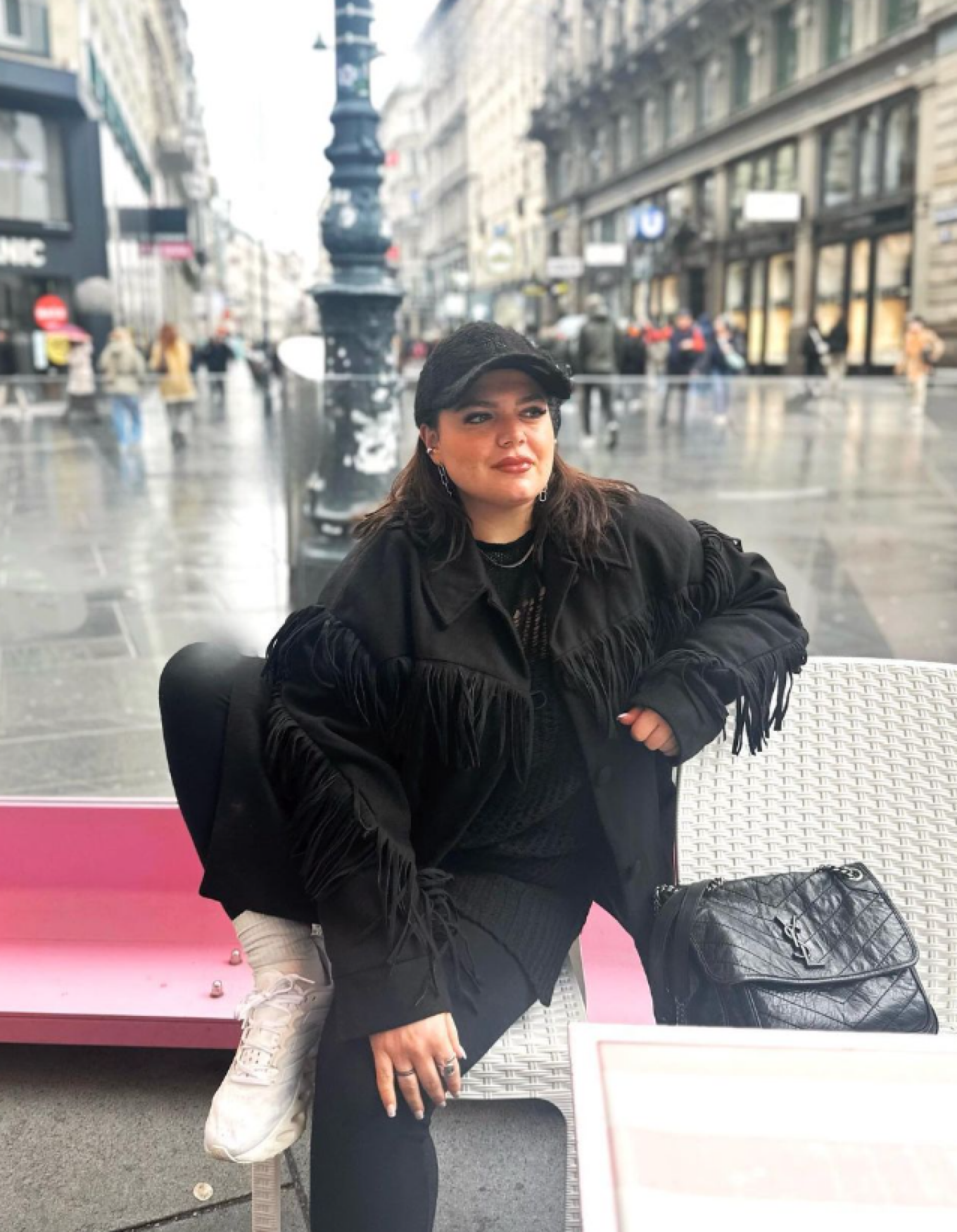 Ντυμένη με μαύρα κάζουαλ ρούχα, λευκά αθλητικά παπούτσια και φορώντας ένα μαύρο καπέλο τζόκεϊ στο κεφάλι, η Δανάη Μπάρκα έβγαλε φωτογραφίες καθισμένη σε μια πλατεία. Στην ίδια ανάρτηση, έδειξε και μερικά από τα αξιοθέατα που είδε στη Βιέννη.