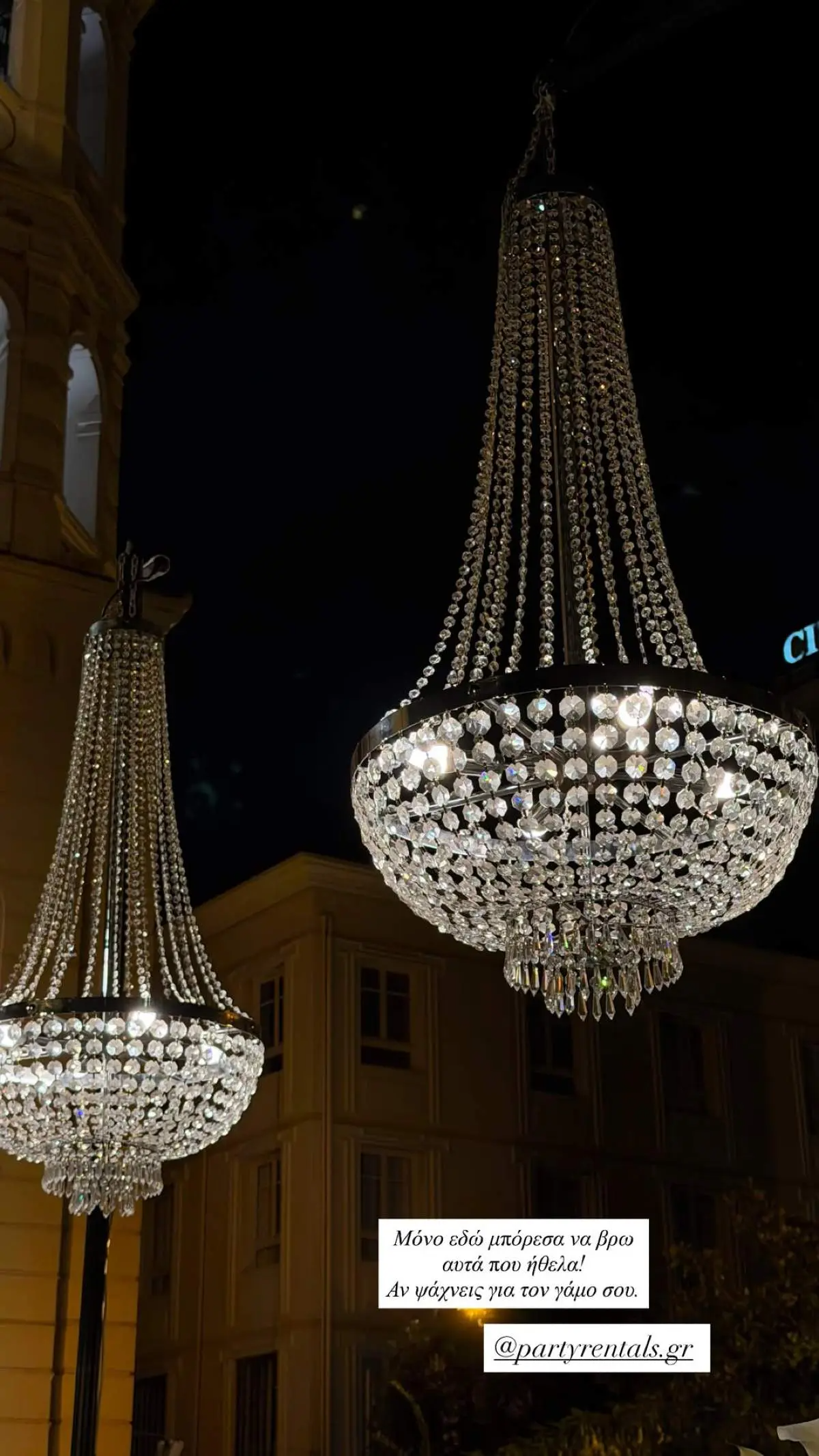 Μέσα από τις αναρτήσεις μάλιστα βλέπουμε και τον στολισμό της εκκλησίας και της δεξίωσης, ο οποίος μοιάζει λες και είναι βγαλμένος από παραμύθι. Μάλιστα, ο γάμος πραγματοποιήθηκε την ώρα που έπεσε ο ήλιος και γι’ αυτό το λόγο το ζευγάρι είχε προβλέψει να τοποθετήσει παντού κεράκια και διάφορα φωτιστικά, κάνοντας το κλίμα ακόμα πιο ρομαντικό και ιδιαίτερο. Ο στολισμός εκπέμπει λάμψη και πολυτέλεια με τους μεγάλους πολυέλαιους και τον περιποιημένο μπουφέ, δημιουργώντας ένα άκρως κομψό και διακριτικό σκηνικό.