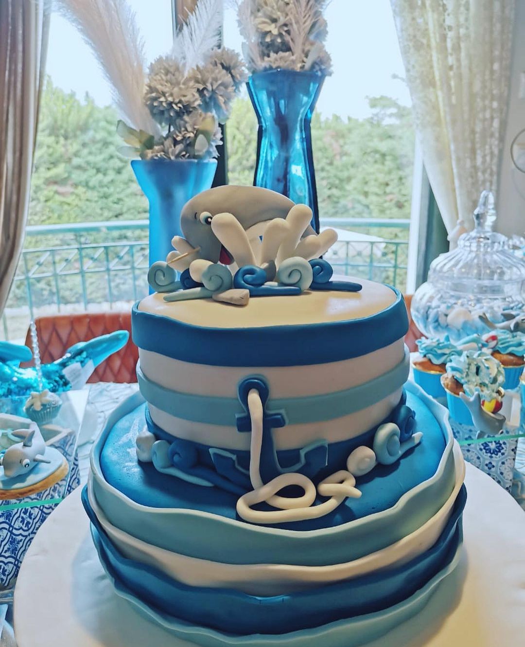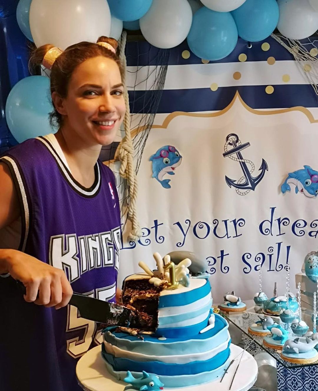 Όπως θα δείτε στα στιγμιότυπα που δημοσίευσε στα social media η Κατερίνα Στικούδη ο χώρος γέμισε με γαλανόλευκα μπαλόνια, ενώ αίσθηση προκάλεσε η εντυπωσιακή διώροφη τούρτα σε μπλε αποχρώσεις που είχε πάνω ένα κινούμενο σχέδιο και ένα κεράκι με τον αριθμό ένα.