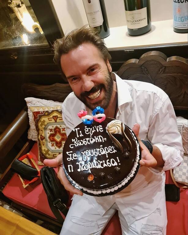 Στη λεζάντα της ανάρτησης έγραψε χαρακτηριστικά: «Ευχαριστώ από καρδιάς για την τούρτα έκπληξη τα φιλαράκια μου στην Σαντορίνη στο αγαπημένο μου εστιατόριο».
