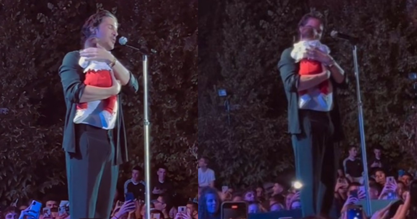 Συγκεκριμένα, ο Νίκος Οικονομόπουλος πήρε ένα μωρό από το κοινό και το κρατούσε στην αγκαλιά του, όσο τραγουδούσε το κομμάτι. Ένας χρήστης του TikTok ανέβασε το βίντεο στο προφίλ του και η δημοσίευσή του απέσπασε μέσα σε λίγες ώρες χιλιάδες likes και εκατοντάδες σχόλια.