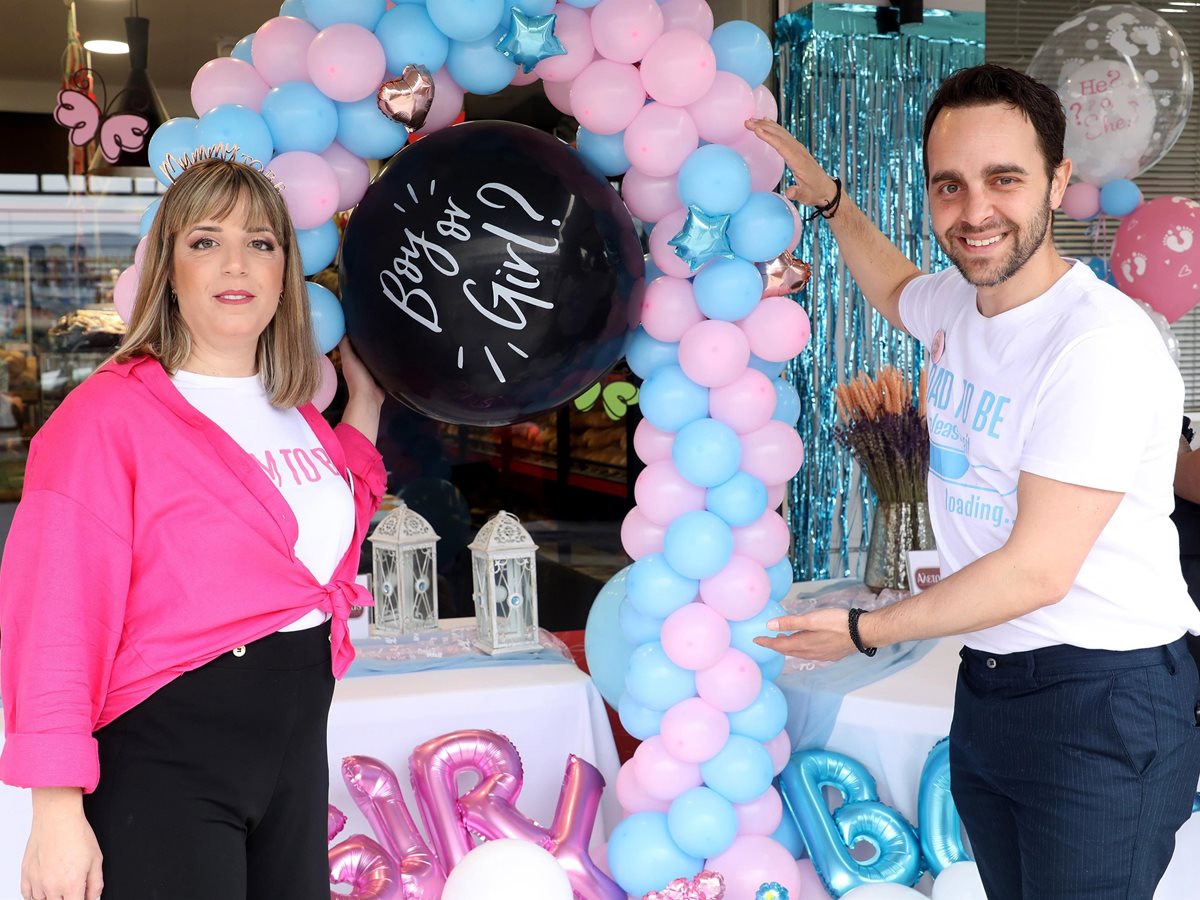 Ο Λάζος Μαντικός και η Αθηνά Κουρή περιμένουν κοριτσάκι, καθώς το μαύρο μπαλόνι που βρισκόταν στο κέντρο της διακόσμησης ήταν γεμάτο με ροζ κομφετί τα οποία αποκάλυπταν το φύλο του μωρού.