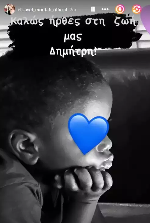 Μέσα από τον προσωπικό της λογαριασμό στο Instagram, η Ελισάβετ Μουτάφη καλωσόρισε επισήμως τον μικρό Δημήτρη στη ζωή τους. Δημοσίευσε μια φωτογραφία του αγοριού από την Αφρική ως ιστορία στο προφίλ της, συνοδευόμενη από το τρυφερό μήνυμα: «Καλώς ήρθες στη ζωή μας Δημήτρη».