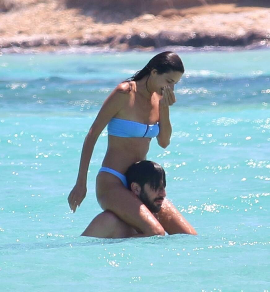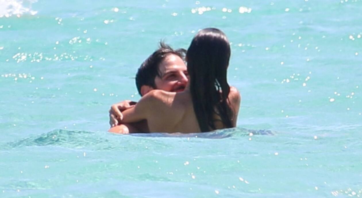 Στις φωτογραφίες βλέπουμε τους δυο τους σε τρυφερά ενσταντανέ μέσα στη θάλασσα, αδιαφορώντας για τα αδιάκριτα βλέμματα.