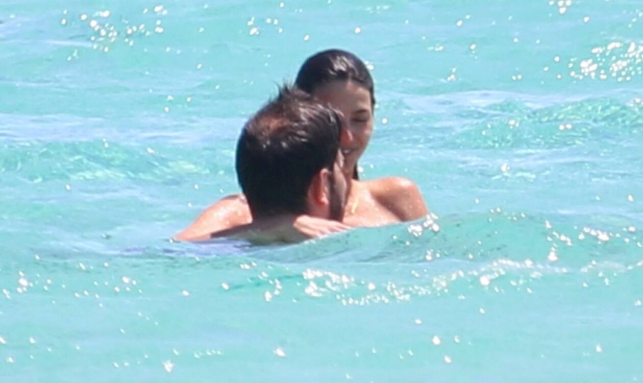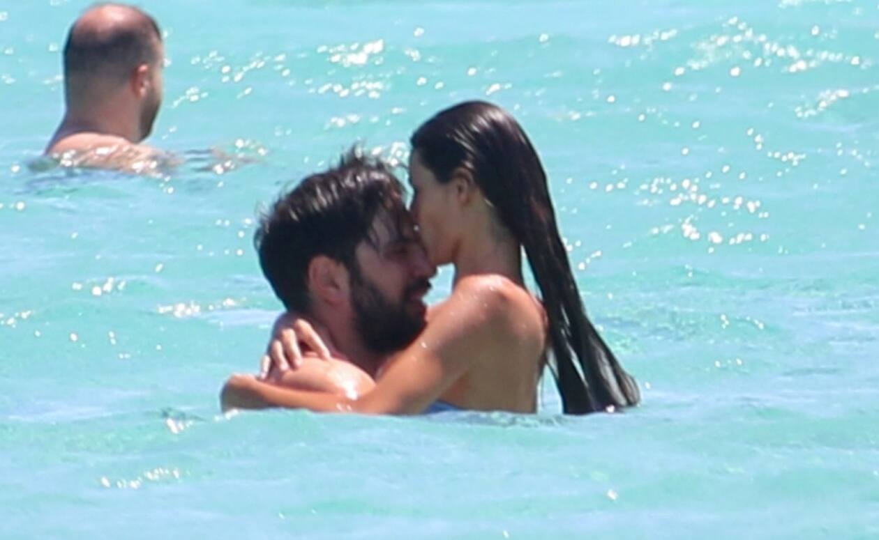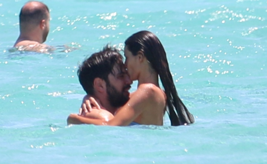 Ο φωτογραφικός φακός απαθανάτισε το ζευγάρι να απολαμβάνει τις βουτιές τους στη θάλασσα και φυσικά δεν έλειψαν τα «καυτά» φιλιά, οι τρυφερές αγκαλιές αλλά και τα παιχνίδια μέσα στο νερό.