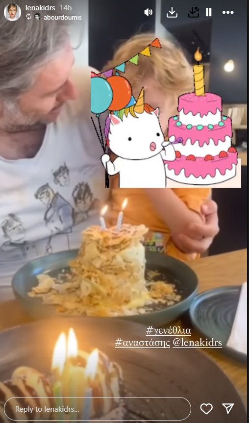 Συγκεκριμένα, σε ένα βίντεο που δημοσίευσε ο Αλέξανδρος Μπουρδούμης στον λογαριασμό του στο Instagram, φαίνεται να σβήνει τα κεράκια της τούρτας των γενεθλίων του, κρατώντας στην αγκαλιά του τον γιο του, ενώ η Λένα Δροσάκη του τραγουδά το γενέθλιο τραγούδι.