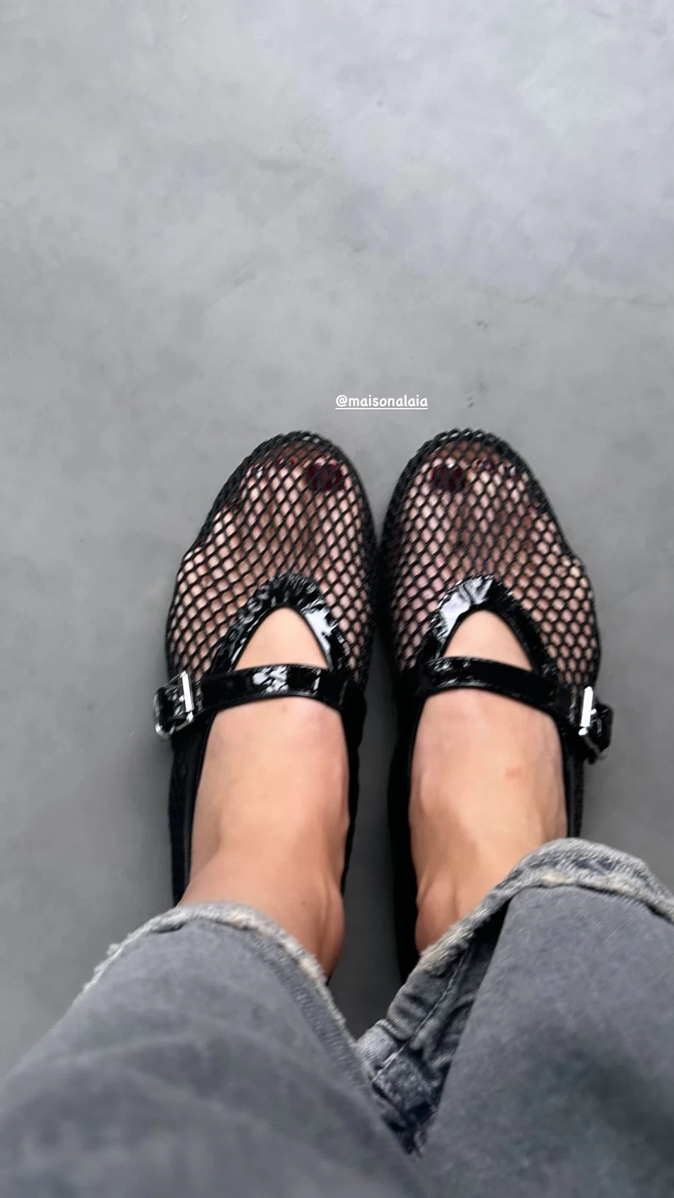 Ειδικότερα, επέλεξε τζιν παντελόνι με γυρισμένα τα ρεβέρ και τα πιο δημοφιλή παπούτσια του 2024, τα fishnet ballet flats του οίκου Alaïa σε μαύρο χρώμα, τα οποία κοστίζουν 890 ευρώ.