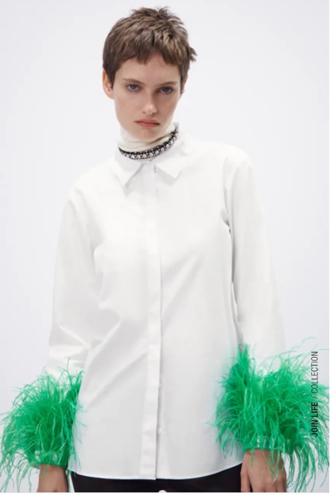 Πρόκειται για ένα πουκάμισο με γιακά από τα Zara, το οποίο κοστίζει 69,95 ευρώ και το οποίο έχει μακριά μανίκια που καταλήγουν σε μανσέτα, την οποία μπορείς να αφαιρέσεις.