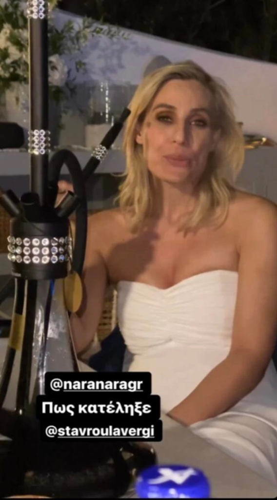 Στην τρίτη φωτογραφία βλέπουμε την παρουσιάστρια του “Mega Καλημέρα” να κάνει ναργιλέ με τα μαλλιά της κάτω.