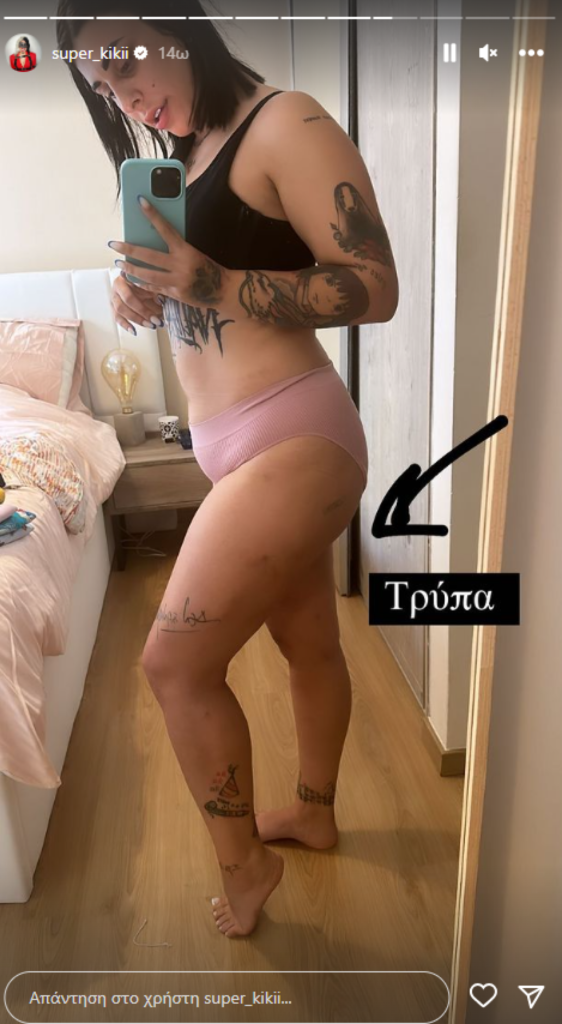 «Πέρα από λιποαναρρόφηση σε κάποια σημεία, από το εσωτερικό του μπουτιού βγάλαν κομμάτια, ψωμί. Μου βγάλαν περίπου 2 λίτρα λίπος δεν ξέρω και ‘γω πόσο δέρμα που είναι σαν ψάρι. Είναι από τη μία αηδιαστικό, από τη μία τέλειο, μακάρι να μπορούσα να σας το δείξω αλλά το Instagram μπορεί να νομίζει να είναι κάτι άλλο και να το κατεβάσει. Τρελή απόφαση, πάρα πολύ δύσκολο για μένα αλλά έπρεπε να γίνει γιατί όσο και να γυμναζόμουν, όσα κιλά και να έχανα το σώμα μου έμενε ίδιο σε αυτά τα σημεία γιατί είναι κληρονομικό. Πολύ ακριβή διαδικασία, πάρα πολύ. Αυτά τώρα πάω σπίτι μου πολύ κρεβατωμένη θα είμαι, αλλά τις διαφημισούλες μου κανονικά θα τις κάνω» επισήμανε η Supe Κική περιγράφοντας την διαδικασία στην οποία υποβλήθηκε.