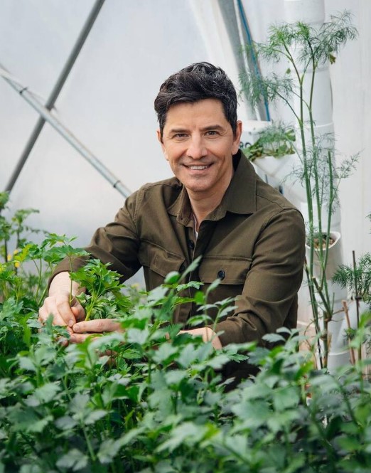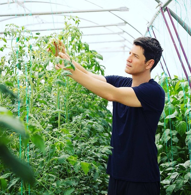 Στην αυλή υπάρχει τραπεζαρία αλλά και ξύλινα και μεταλλικά παγκάκια και τραπεζάκια με μια vintage αισθητική, ενώ ο καλλιτέχνης έχει δημιουργήσει τα δικά του μποστάνια. Τέλος, έχει φτιάξει ένα θερμοκήπιο για να προστατεύει τα λαχανικά, όπως βλέπουμε από τις φωτογραφίες στα social media.