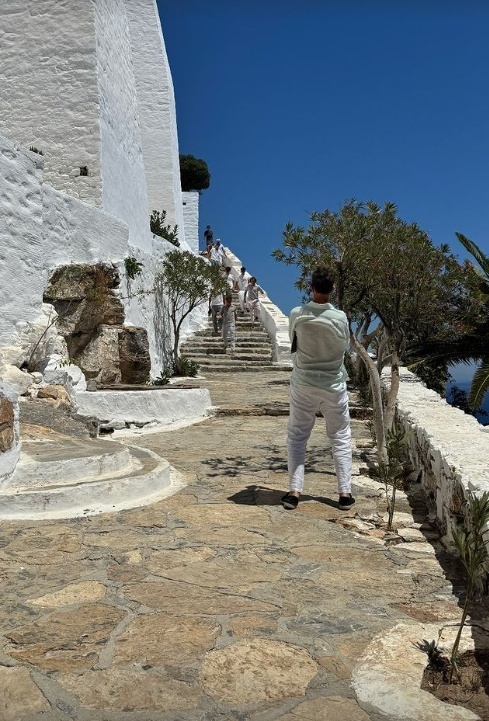 Στις φωτογραφίες, τραβηγμένες με την κάμερα του κινητού του τηλεφώνου, ο Παύλος και η Μαρί Σαντάλ φαίνονται ευδιάθετοι και κομψοί, ενώ δεν παρέλειψε να απαθανατίσει και το νιόπαντρο ζευγάρι, προσθέτοντας έτσι μια προσωπική και ζεστή νότα στις αναρτήσεις του. Οι εικόνες από το ειδυλλιακό τοπίο της Τσαγκαράδας και οι χαρούμενες στιγμές που μοιράστηκε το ζευγάρι, μαρτυρούν την ξεχωριστή αυτή ημέρα γεμάτη αγάπη και γιορτινή διάθεση.