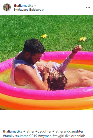 Οι δύο τους έπαιζαν ξέγνοιαστοι στην φουσκωτή τους πισίνα, με τη Θάλεια Ματίκα να εκτελεί χρέη paparazzi και να απαθανατίζει την όμορφη στιγμή.