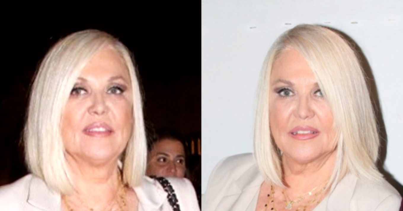 Η 65χρονη ήταν πολύ λαμπερή με το κομψό blazer, το ασορτί γιλέκο και το φαρδύ παντελόνι της.