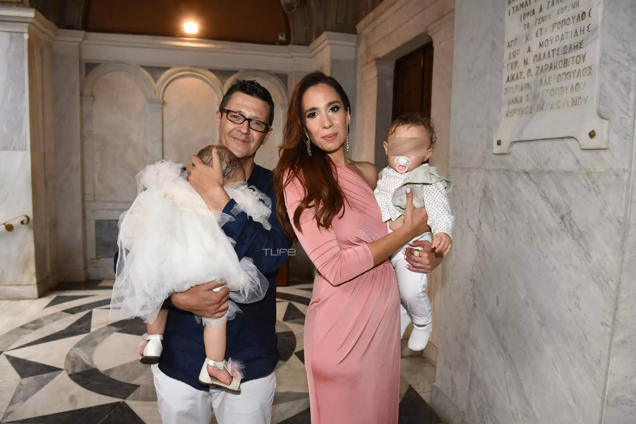 Το ζευγάρι των δημοσιογράφων υποδέχτηκαν συγγενείς, φίλους και συνεργάτες στην Πρώτη Μητρόπολη Αθηνών, σήμερα, Κυριακή, ενώ μετά το πέρας της βάφτισης, πόζαρε αγκαλιά με τα νεοφώτιστα παιδιά του.