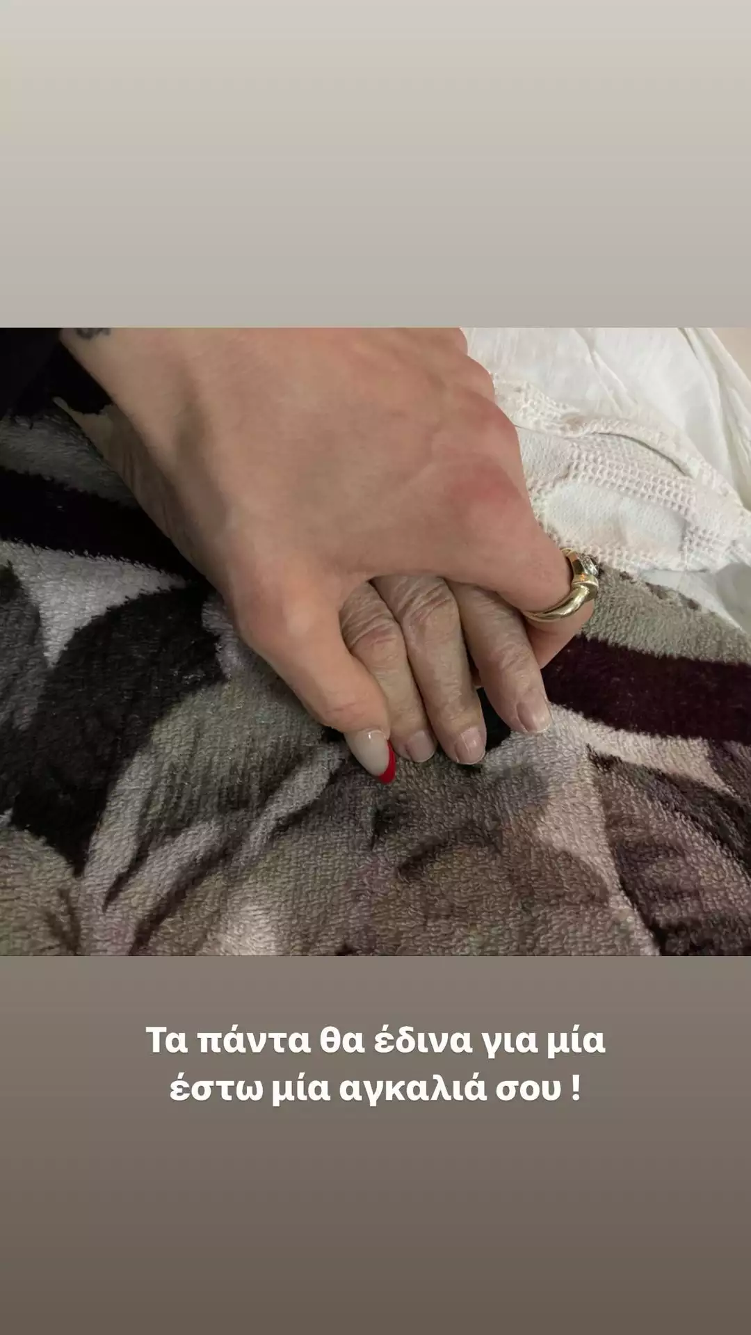 «Τα πάντα θα έδινα για μια έστω αγκαλιά σου» γράφει σε μια άλλη ανάρτησή της η Δήμητρα Αλεξανδράκη.